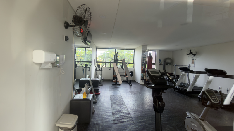 O condomínio possui portaria 24h, quadra, piscina, academia, parque, salão de festas
