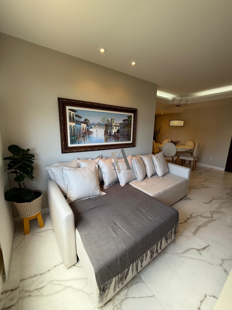 Apartamento à venda de três quartos, suíte, banheiro social, dependência revertida para ampliar a cozinha, armários planejados em todos os ambientes. Apartamento totalmente reformado, projeto de iluminação e gesso, duas vagas, 108m2.